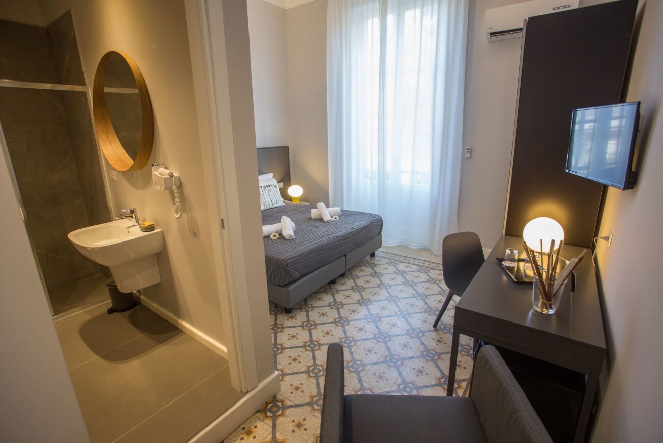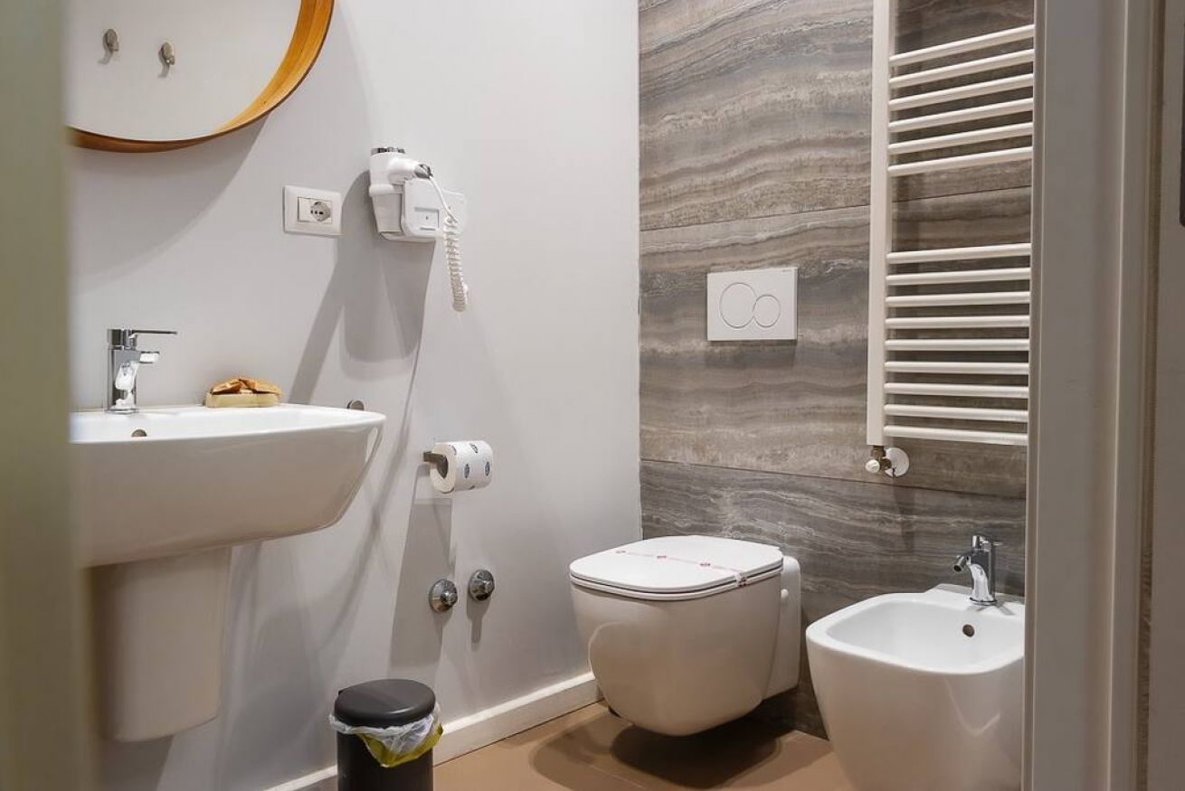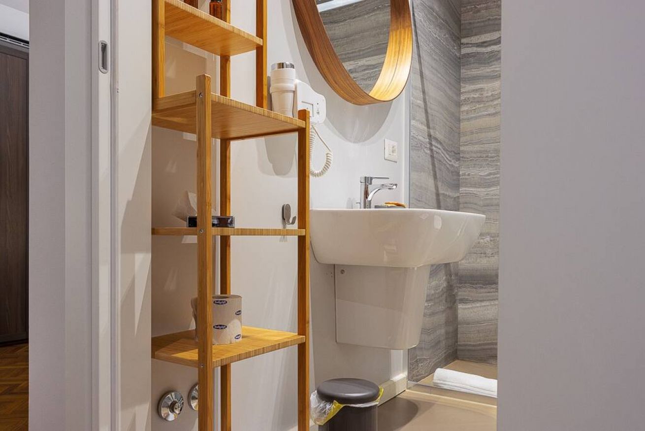 Il bagno privato in camera dispone di ampia doccia e asciugamani di pregio; troverai inoltre un set cortesia a tua disposizione.
