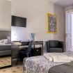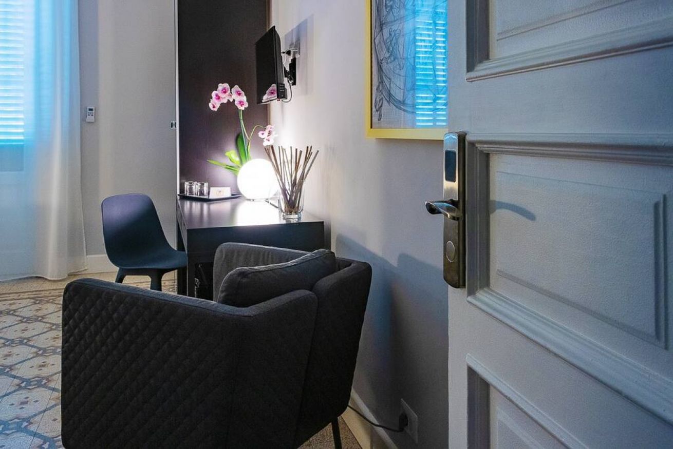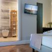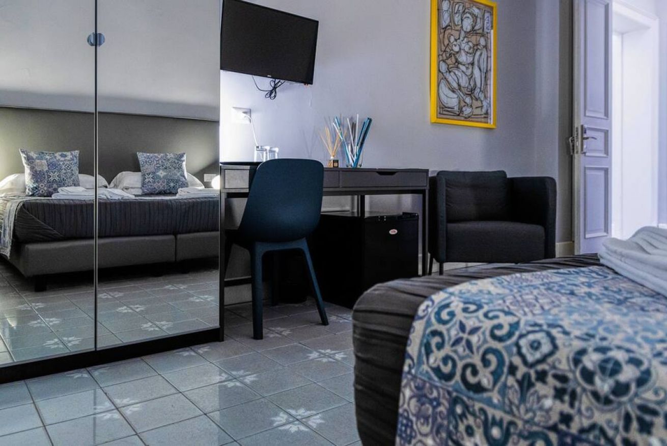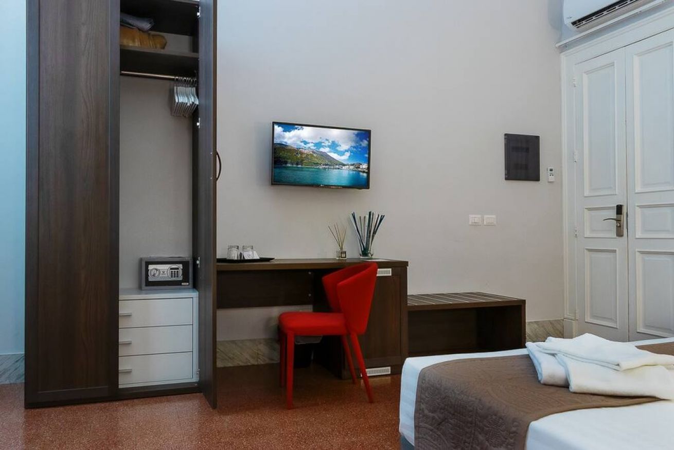 La camera dispone inoltre di connessione wi-fi, il televisore con schermo piatto e minibar.