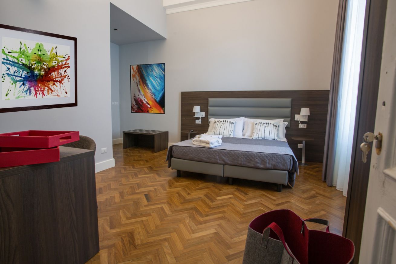 La camera dispone inoltre di balcone privato, connessione wi-fi, il televisore con schermo piatto e minibar.